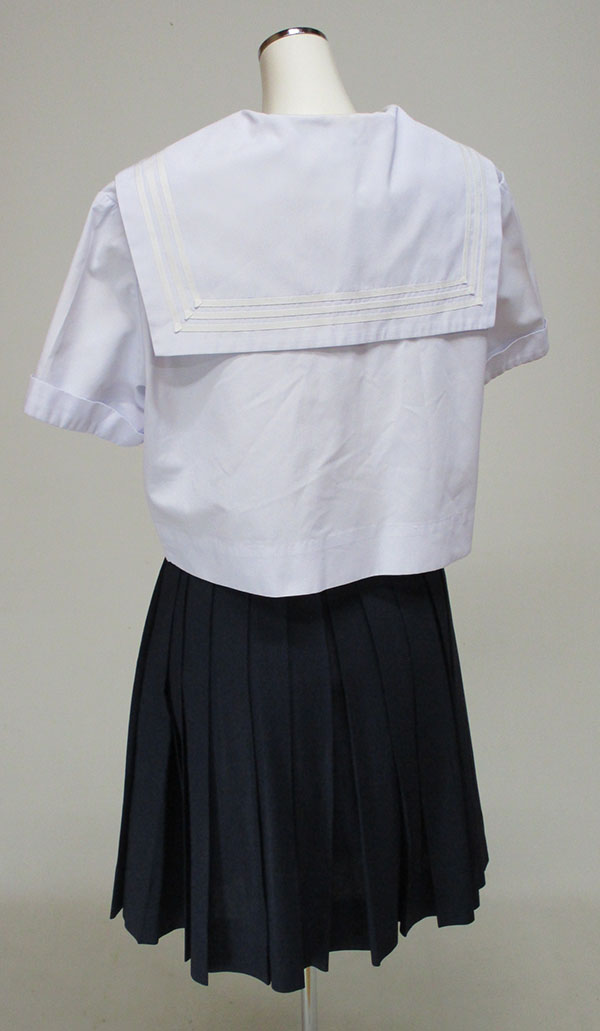 襟に白3本ライン、胸当てに刺しゅう、かぶるタイプ、少々汚れあり