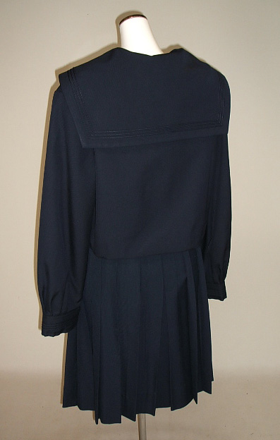 襟等に紺3本ライン、青系ネクタイ付、かぶるタイプ