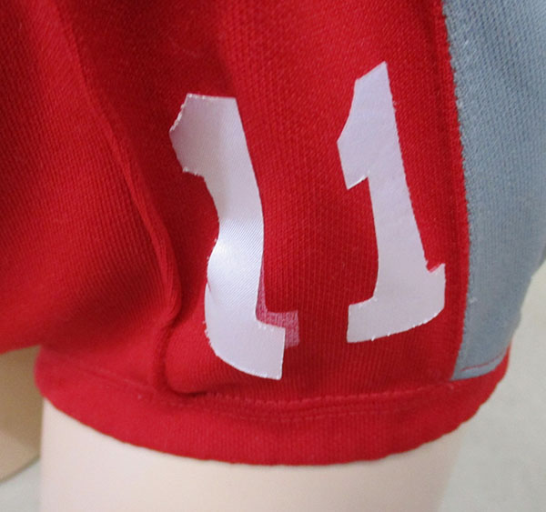 ポリエステル他、ナンバーワッペン付、レッド×グレーライン