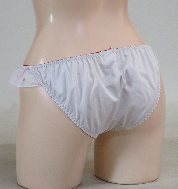 ポリエステル100%、局部薄くシミあり、ホワイト×ピンク他柄入り、女子高生