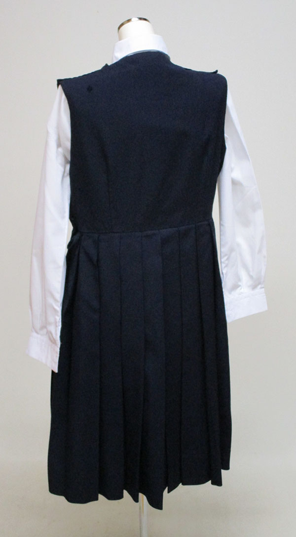 紺色柄入りリボン付 ジャンスカ:紺、左スナップ