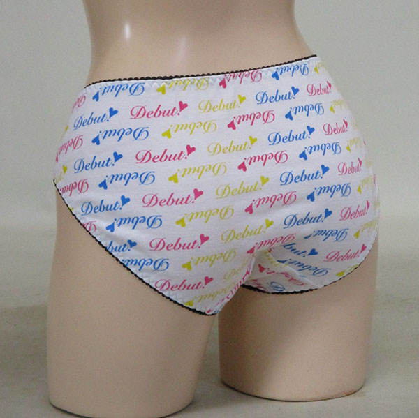 ポリエステル65%・綿35%、ホワイト×ピンク他柄入り、女子中学生