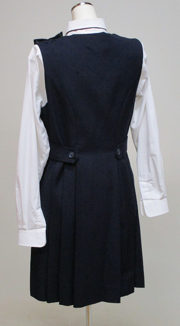 ブラウス:襟まわりイタミあり、エンジヒモタイ付 ジャンスカ:紺、左ファスナー、虫食いあり