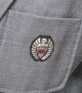 ブレザー:グレー、左胸にエンブレム付