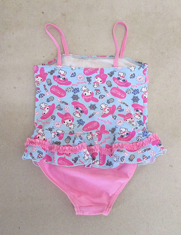 ポリエステル85%・ポリウレタン15%、記名あり、ライトブルー他『My Melody』柄入り