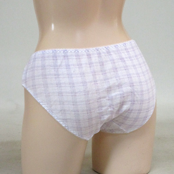 綿100%、局部シミあり、ホワイト×ソフトパープルチェック、女子中学生